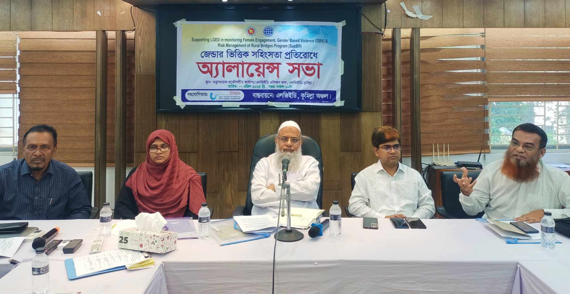 সভায় এলায়েন্স গঠন ও সার্পোটিং এলজিইডি ইন মনিটরিং ফিমেল এনগেজমেন্ট, জেন্ডার বেইজড ভায়োলেন্স এবং রিক্স ম্যানেজমেন্ট অফ রুরাল- ব্রিজেস প্রকল্পের লক্ষ্য ও উদ্দেশ্য তুলে ধরা হয়। জেন্ডার ভিত্তিক সহিংসতা প্রতিরোধে (জিবিভি) এ্যালায়েন্স গঠন করা হয়। নারীর মানবাধিকার ইস্যুতে অভিজ্ঞতা বিনিময়, সহিংসতা প্রতিরোধে কর্মপরিকল্পনা প্রনয়ণ বিষয়ে মতবিনিময় সভা করা হয়।
