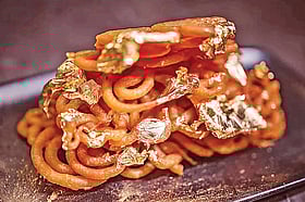 দক্ষিণ কলকাতার একটি অভিজাত মিষ্টির দোকানের খদ্দেররা যখন গরম জিলাপির প্লেট সামনে পান, তখন তাঁদের চোখ ধাঁধিয়ে যায় অসাধারণ এক দৃশ্যে। চকচকে সোনার পাতলা পাত দিয়ে মোড়ানো সেই জিলাপির দৃশ্য…
